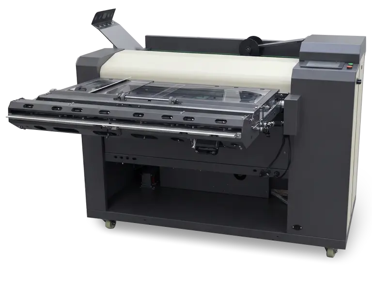 Manual and automatic paper feeding, storage for unfolded drawings, and conveniently located outputs for A4 and large-format drawings.
