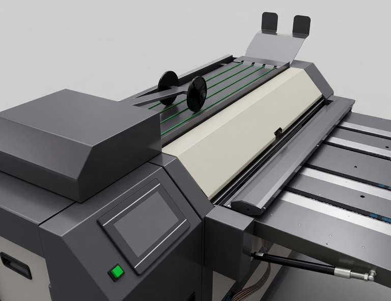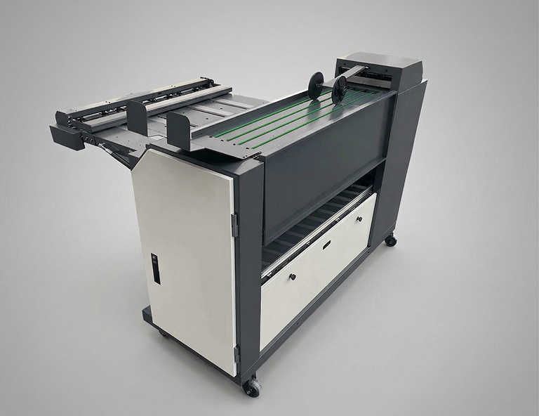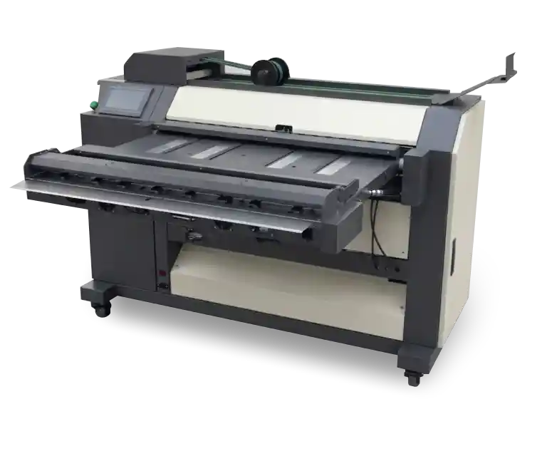 Automatically folds documents post-printing, streamlining high-volume technical document processing